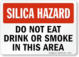 - Do not eat, drink, use tobacco, products, or apply cosmetics in areas where there is dust containing crystalline silica.