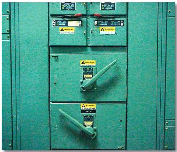necessary. For longer sections additional labels can be applied every 5-10 feet. Since both front and back-side switch gear covers are hinged, the back-side covers should also be labeled.