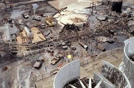 - April 26, 1986: Chernobyl disaster. At the Chernobyl nuclear power plant in Prypiat, Ukraine a test on reactor number four went out of control, resulting in a nuclear meltdown. The ensuing steam explosion and fire killed up to 50 people with estimates that there may be between 4,000 and several hundred thousand additional cancer deaths over time. Fallout could be detected as far away as Canada. The Chernobyl Exclusion Zone, covering portions of Belarus and Ukraine surrounding Prypiat, remains contaminated and mostly uninhabited. Prypiat itself was totally evacuated and remains as a ghost town.