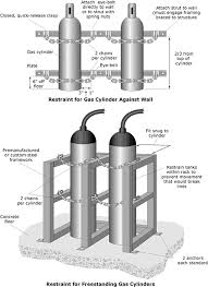 Always chain or securely restrain cylinders in an upright position to a wall, rack or other solid structure wherever they are stored, handled or used. Securing each cylinder individually is best. Stacking of groups of cylinders together offers some protection, but if this is done improperly, the entire group or individual cylinders could fall.