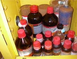 - Store corrosives in suitable labelled containers away from incompatible materials, in a cool, dry area.