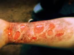 Most chemical burns occur on the face, eyes, hands, arms, and legs. Usually a chemical burn will be relatively small and will require only outpatient treatment. Chemical burns can be deceiving, however. Some agents can cause deep tissue damage that is not not readily apparent when people first look at it.