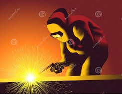 Figure 3: Welder wearing welding helmet, dry leather welding gloves and leather apron