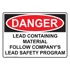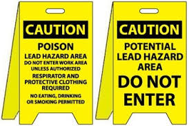 Proper signs will be posted at the entrance and exits to all lead hazard areas, No other signs or statements may appear on or near any lead hazard sign which contradicts or detracts from the meaning of the required sign. All lead hazard signs will be kept illuminated and cleaned as necessary so that the legend is readily visible. The signs will contain the following or other appropriate wording/warning:
