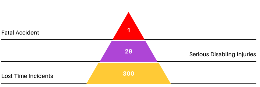 It was Heinrich who developed the Near Miss Pyramid Theory – a theory which states that for every single fatal incident a company experiences, it will have had 29 serious disabling workplace injuries and 300 lost time incidents.