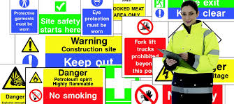 a sign providing information or instruction about safety or health at work by means of a signboard, a color, an illuminated sign or acoustic signal, a verbal communication or hand signal.